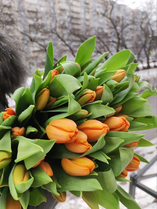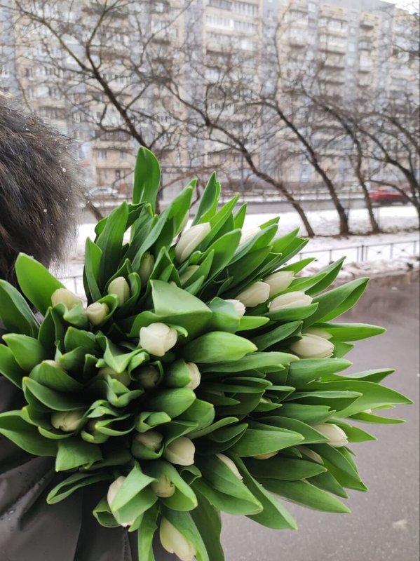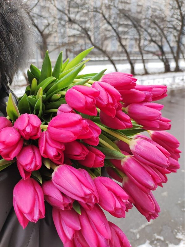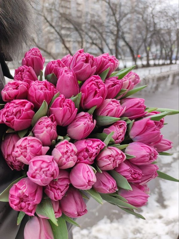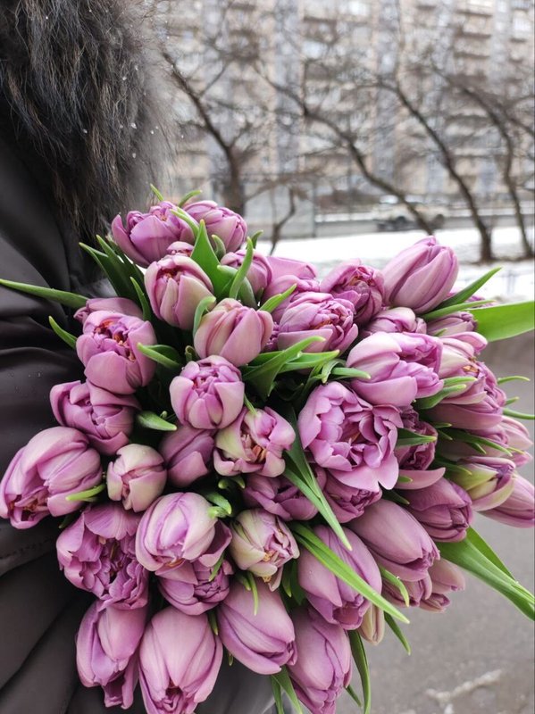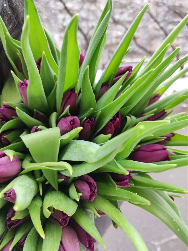 Очень красивый букет. Не просто «тюльпанчики на 8марта», а действительно милое оформление. И пахнут очень приятно, не просто зеленью, а тонкий аромат свежих фиолетовых цветов. Нюхала их весь день)) благодарность бутику и успехов!!