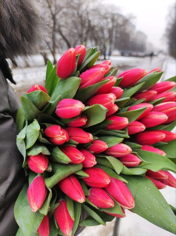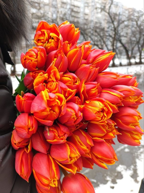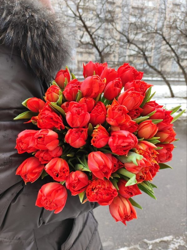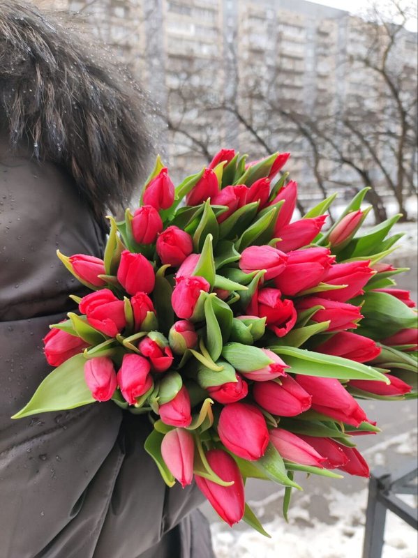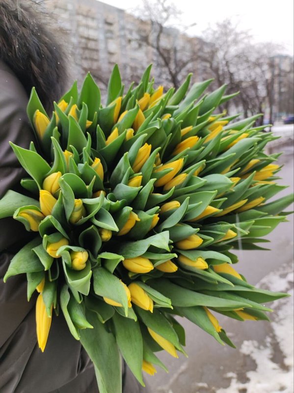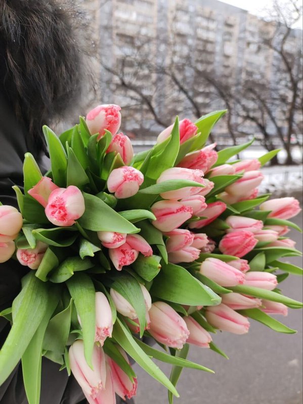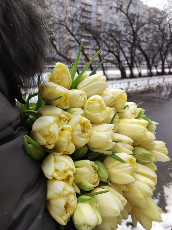 Очень красивый букет. Не просто «тюльпанчики на 8марта», а действительно милое оформление. И пахнут очень приятно, не просто зеленью, а тонкий аромат свежих фиолетовых цветов. Нюхала их весь день)) благодарность бутику и успехов!!